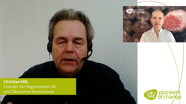 Christian Hiß wuchs auf einem der ersten Biohöfe Deutschlands auf. Nach der Ausbildung zum Gärtnermeister gründete er mit erst 21 Jahren seine eigene Bio-Gärtnerei. 2006 gründete er schließlich die Regionalwert AG, deren Geschäftsführer er bis heute ist. Die Regionalwert AG unterstützt und finanziert lokale Betriebe und Betriebsgründungen. Als Ashoka Fellow unterstützt und inspiriert er seit 2009 Menschen mit seinen eigenen Erfahrungen als Social Entrepreneur. Darüber hinaus ist Christian ein gefragter Vortragender und Buchautor.