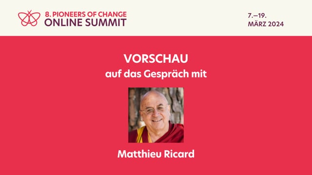 Matthieu Ricard erzählt von seinem Pfad vom Wissenschaftler zum Mönch, von Frankreich nach Tibet. Er spricht über die Lehrer, die ihn geprägt haben und den plötzlichen Erfolg, der ihm so viel ermöglicht hat. Er erklärt den Unterschied zwischen Empathie und Mitgefühl und wie uns das dabei helfen kann, die Probleme unserer heutigen Zeit zu lösen, ohne dabei auszubrennen.